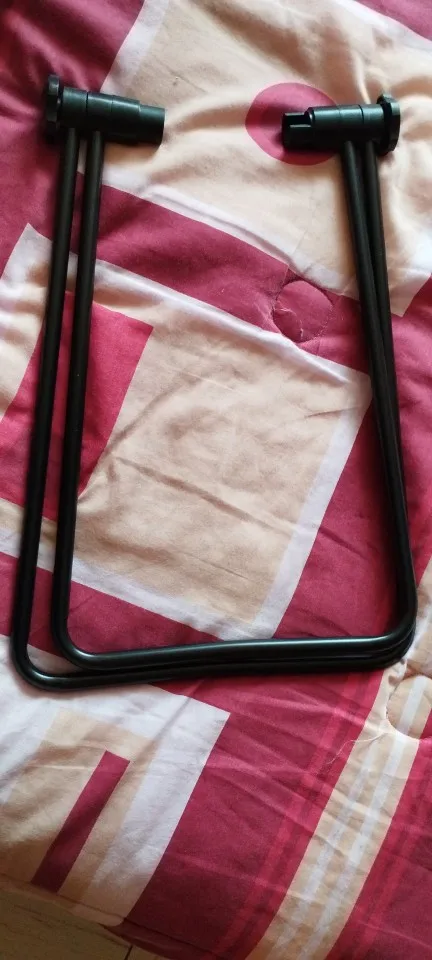 İki ayağı açmak/katlamak/sabitlemek için her iki taraftaki vidalı düğmeler.Bisikletin arka göbek aksına monte edilir.Bisikletin boyasını plastikten yapılmış konektörlerle koruyun.